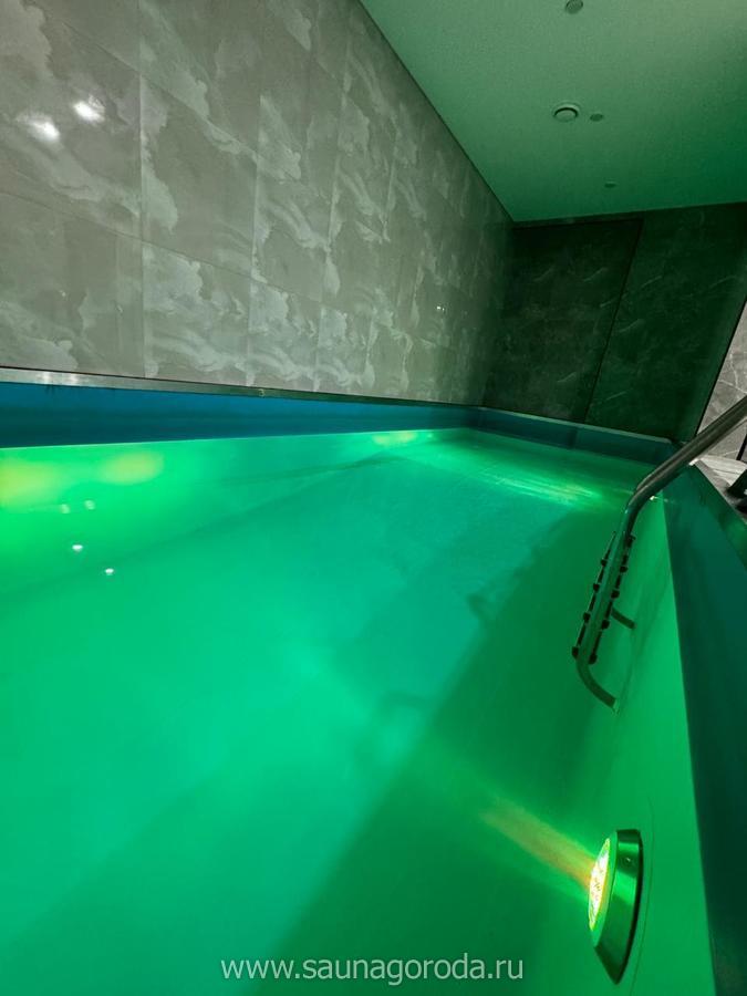 В сауне имеется тёплый бассейн 6х2,5 м., с подогревом и подсветкой.